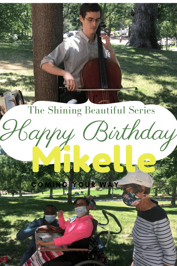 For thirty-seven years, I have been Mikelle’s coordinator. This year had me stumped. While on a long walk in the neighborhood, I stumbled onto a flier taped to a street light. Want a private concert? Will play for you in front of your house. A young cellist was willing to give a private concert and a new birthday celebration idea gleamed like a light bulb over my head.